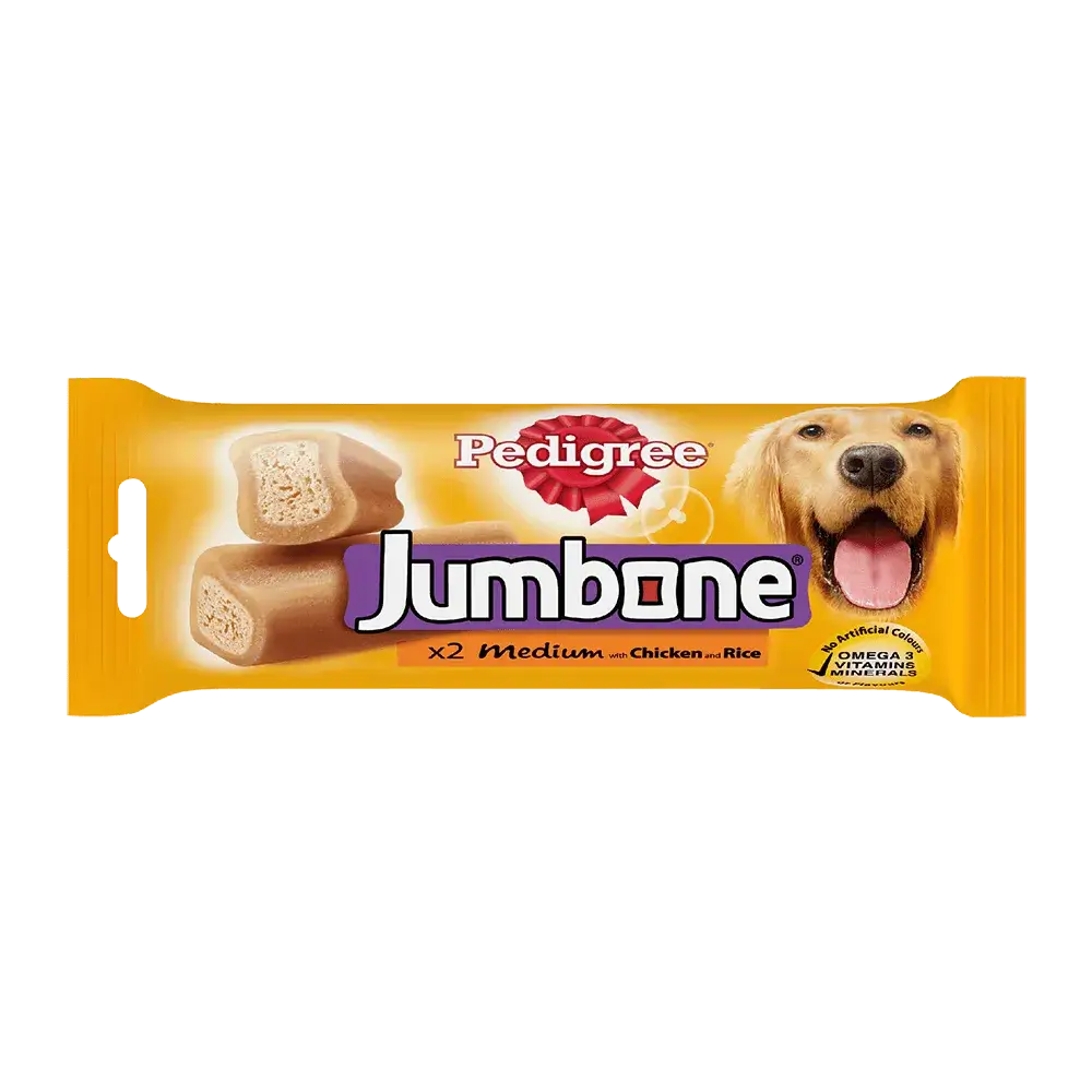 Give your dog a long-lasting, satisfying chew with Pedigree Jumbone Dog Treats — the perfect combination of a tough outer shell and a deliciously soft, meaty centre. Designed to keep dogs happily occupied, these treats provide both enjoyment and nutrition in every bite.